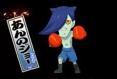 妖怪・あんのジョー 妖怪大辞典 2015年11月16日 0 妖怪あんのジョー・ウスラカゲ族 取り憑いた相手を不安にさせ、その不安を現実のものにしてしまう妖怪。 初登場は第95話「妖怪あんのジョー」 一応、ボクサーをしている妖怪だが、弱弱しくモデルとなった矢○ジョーとはかけ離れた気弱な性格をしている。 風邪引きを不安に思うと本当に風邪を引いてしまう虚弱な性格。 しかし、試合ではあんのジョー並に幸薄そうな「こてんパン」と対決し、グダグダの状態で試合が進行。 クロスカウンターでダブルノックダウン状態になる。 しかし、こてんパンの脚が引っかかりダウンを免れたあんのジョーが見事チャンピオンになるのであったが… 直後の防衛線であっさりと負け、王座陥落をするのであった・・・ 関連情報 第95話「妖怪 あんのジョー」 妖怪・こてんパン PR