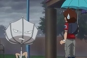 妖怪・さかさっ傘 妖怪大辞典 2014年08月03日 0 さかさっ傘・フシギ族 ビニール傘の妖怪で、取り憑いた相手の傘を逆さまにしてしまう妖怪。 初登場は第29話「妖怪 さかさっ傘」。 ビニール傘から変化した妖怪で、いつも逆さまになっている。 かつてはコンビニで売られていたビニール傘であったが、アッサリと逆さまになってしまい、捨てられてしまう。 その無念から妖怪になってしまっており、性格はやさぐれている。 しかし、から傘お化けの特訓の甲斐もあり、逆さまになりにくい強靱な傘に変化するのであった。 関連情報 第29話「妖怪 さかさっ傘」 妖怪・から傘お化け PR
