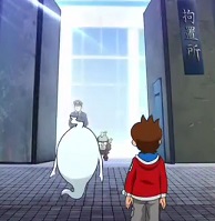 出所したじんめん犬を出迎えたケータとウィスパー達。