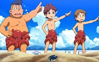 妖怪ウォッチ・第79話「夏だ、海だ、妖怪だ! うみぼうず編」 71~80話 2015年07月25日 0 今週の妖怪ウォッチの3本目は「夏だ、海だ、妖怪だ! うみぼうず編」です。 前回に引き続いての「海編」ですが、果たしてどんな展開になるのでしょうか? 「夏だ、海だ、妖怪だ! うみぼうず編」あらすじ 前回に引き続き、海に来ていてケータたちであったが、カンチの様子がいつもと違うことに気付く。 突如として、「海はいい、僕ぁ幸せだなー」と若大将を彷彿とさせる大きな男になっていたのだ ドッジボールで顔面にボールがヒットしても、その態度は変わらず周囲は戸惑う。 また、鳥のフンが頭に直撃しても落ち着き払っており、いつもと違うことにケータとクマは心配するのであったが・・・ 大きな男として逆に女子からはモテることになるのであった。 その原因を作っていたのは「妖怪うみぼうず」であり、広い海のごとく、人の心を広くしてしまう妖怪であった。 モテるカンチを羨ましがったケータは海ぼうずに取り憑いてもらうことになった。 こうして取り憑かれたケータ、クマ、カンチは心の大きな男に変貌したのであった。 そして、いつもとまったく雰囲気が違う3人にときめく女子たちであったが・・・ 心が大きくなった3人は大波で海パンが流されても全く気にしない状態であったのだ。 その姿に逃げ出す女子たちであったが、全く気にしない心が大きくなった3人はカニや貝殻を海パンがわりに使い始める・・・ そして、最後にはタコを海パンがわりにするのであったが、うみぼうずが他の人に取り憑くために妖怪メダルを残して立ち去ると、ケータ達は我に返るのだった・・・ 関連情報 第79話「夏だ、海だ、妖怪だ! グレるりん編」 「妖怪・うみぼうず」 PR