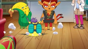 妖怪ウォッチ・第97話「イナウサ不思議探偵社VS怪盗コパン ねらわれた赤の秘宝」 イナウサ不思議探偵社(88話~) 2015年11月28日 0 今回の妖怪ウォッチの2話目は「イナウサ不思議探偵社VS怪盗コパン ねらわれた赤の秘宝」です。 今回はメラメライオンの人格が豹変します。 「イナウサ不思議探偵社VS怪盗コパン ねらわれた赤の秘宝」あらすじ イナウサ探偵社に久しぶりに依頼人が訪れた。 今回の依頼人はメラメライオンだったのだが、イナホ達はあまりの変わりぶりにメラメライオンと気付かない… 理由は「赤の秘宝」と言われるたてがみを奪われてしまったためであり、メラメライオンはすっかり落ち着いた口調に変化していたのだった。 そのため、普通に話せるようになったメラメライオンであったが、メラメラした雰囲気を自身の「アイデンティティ」と理解しており、再び熱い気持ちを復活させたいと言うのであった。 そこで、野球をするなどして、なんとか燃え上がる精神を蘇らそうとするイナホ達。 そして、その騒動を通じてメラメライオンは「コパンは時には考えることの重要性を教えてくれた」と勝手に解釈。 するとそこにクリーニング済のたてがみが到着し、メラメライオンは復活。 そして、いつものカリオストロの城のラストの寸劇が展開。 今回もイナホ達が何もしていない間に事件は解決するのであった。 関連情報 「イナウサ不思議探偵社」シリーズ 妖怪・メラメライオン PR